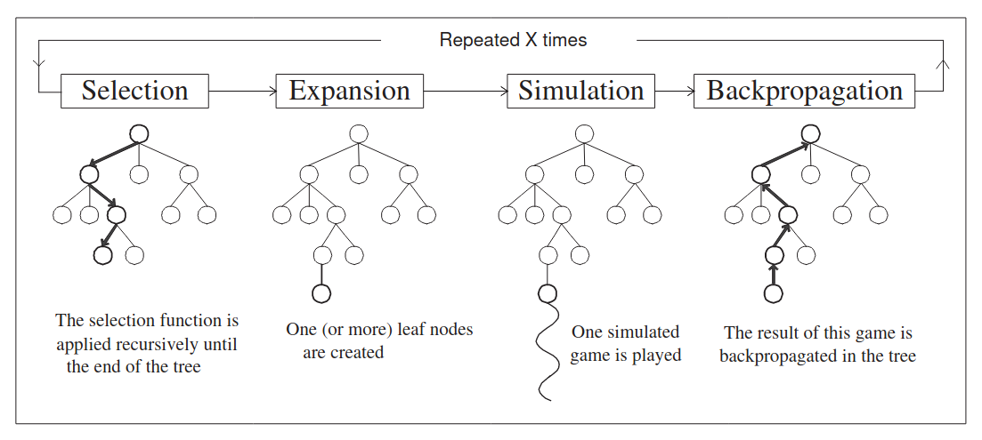 MCTS (Monte-Carlo Tree Search) is a well-trod path in gameplay simulations. Without getting into details, since the methodology behind MCTS is much better explained elsewhere, the core conceit is to make each move in a game into a tree-like structure and then explore the tree.