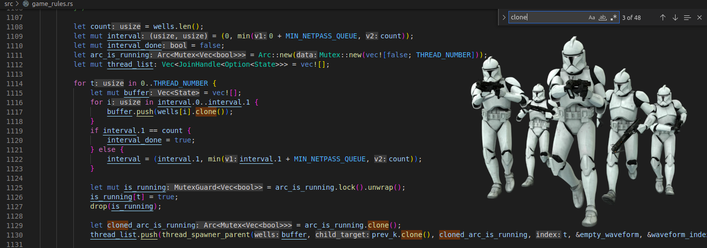 As a point of reference, the first speed test we did was playing random games with an unoptimized emulator in Mathematica, and the same unoptimized emulator in Rust. Mathematica took 4.3 seconds per game on average, and Rust took 0.035 seconds per game on average. This was such a big difference that we deemed that all of the hassle and aggravation of negotiating with Rust’s borrow checker would be worth it.