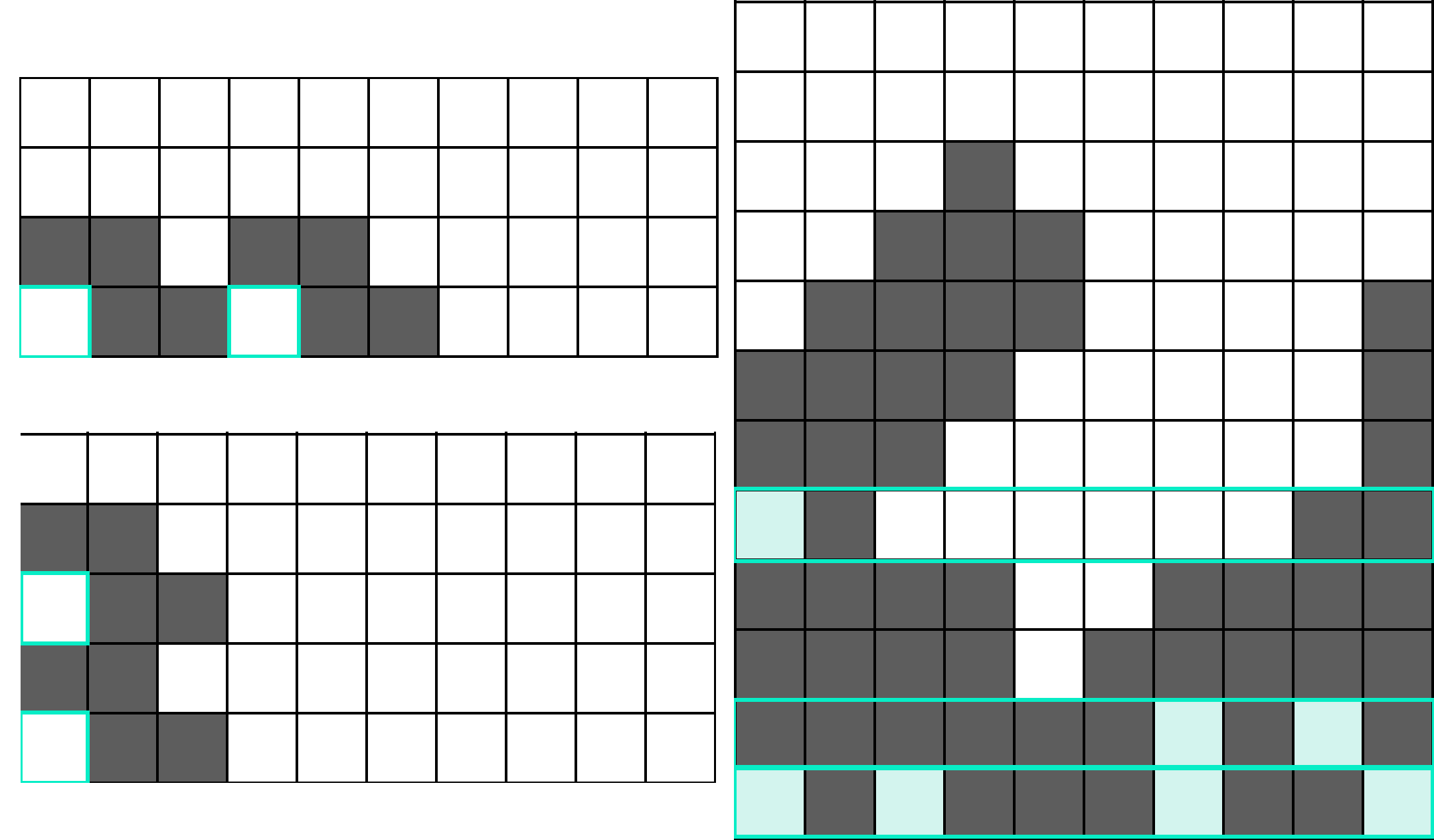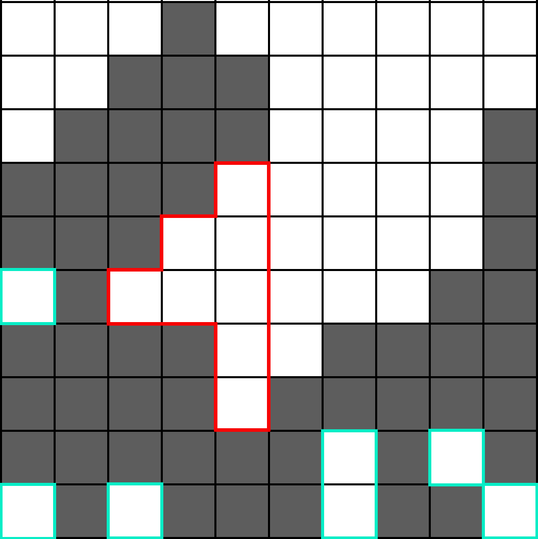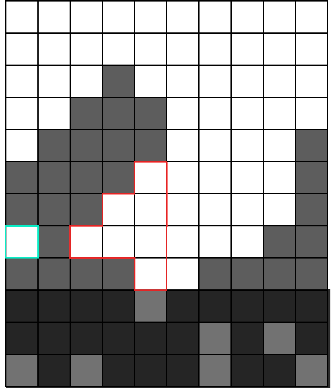 - Continue calculating the left, right, up, and down motions for each new position you encounter, and remove any illegal positions which intersect a filled square, or go outside the well. Merge any duplicate positions together.