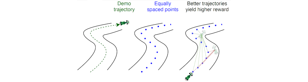 Yosh’s network looks at the vast reward rising in the distance, and contemplates how best to get the carrot and avoid the stick. From “Training an unbeatable AI in Trackmania”.